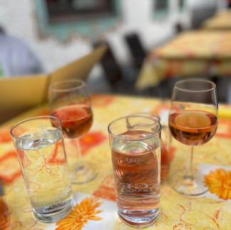 Das Beste daran: der Rosè. Den gab es sofort, gleich nach dem Platz nehmen. Den gibt es gerade auch, beim Schreiben auf der Terrasse. Lecker!!